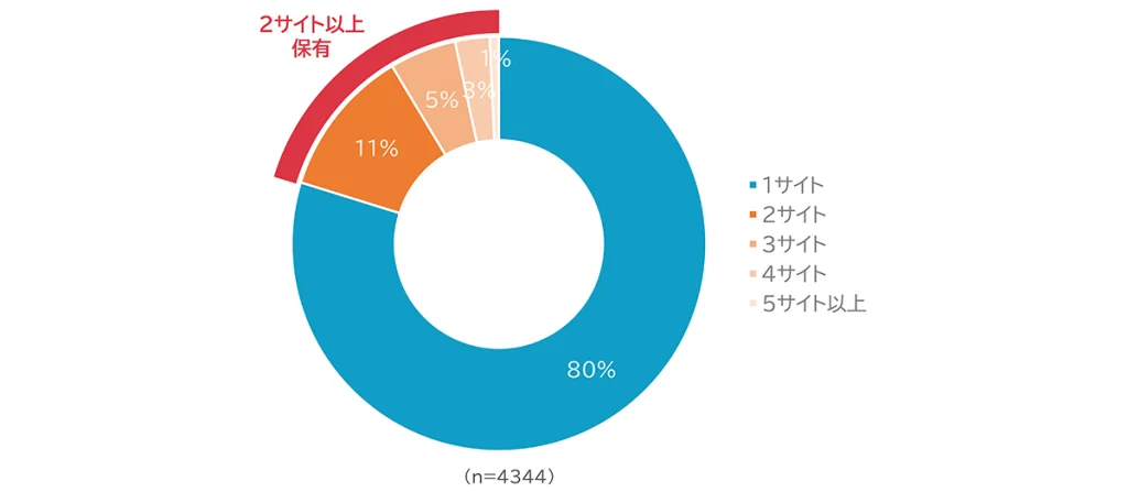 昨年当社でホームページを所有している中小企業4,344社に対して行ったアンケート結果によると、20%の企業が2サイト以上保有していることがわかりました。