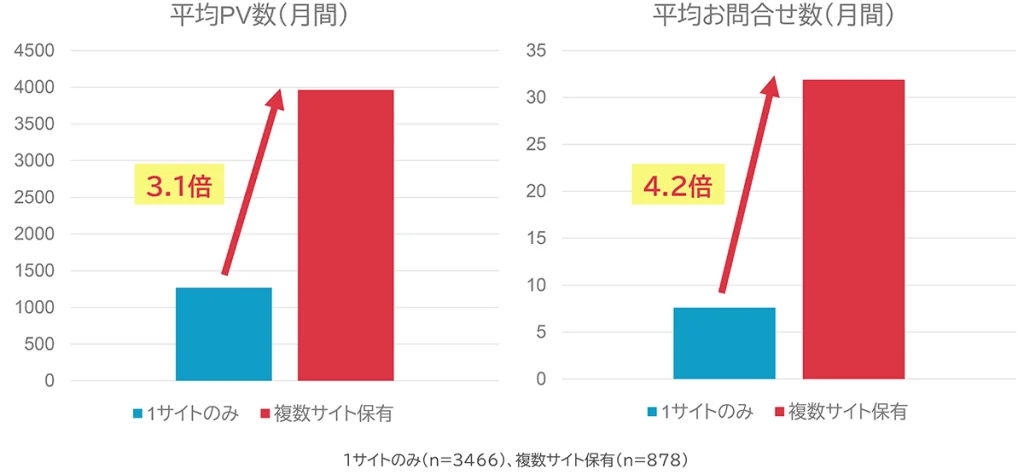さらに、複数サイトを所持している企業は、1サイトのみの企業と比べて、