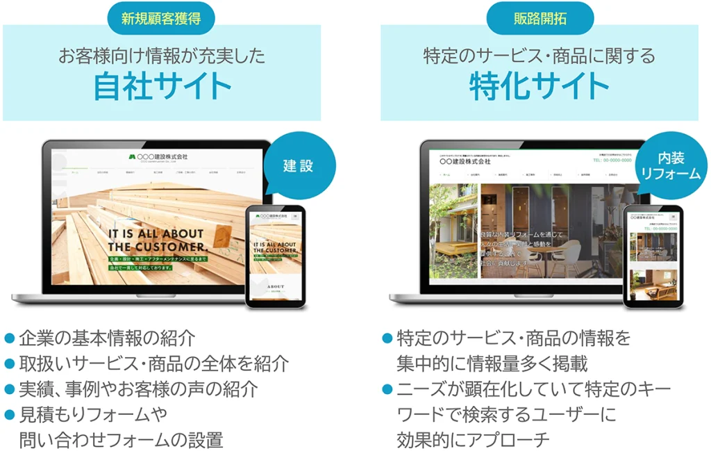 例:建設業のメインサイト+「リフォーム専用サイト」 - 採用活動の強化