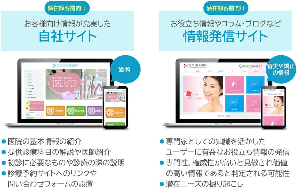 自社サイトは「歯科」など特定のキーワードで検索するユーザーを想定していますが、これはすでにニーズが顕在化しているユーザーをターゲットとしています。