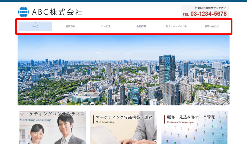 訪問したユーザーが最初に目にする部分であり、サイト内の主要ページへ案内する”道しるべ”の役割を持っています。