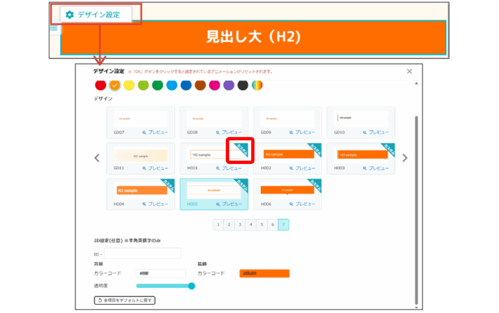 1.デザイン設定・カラー編集