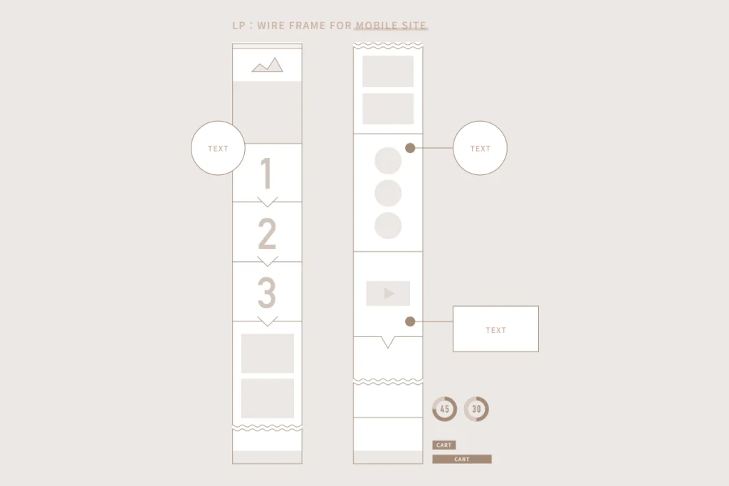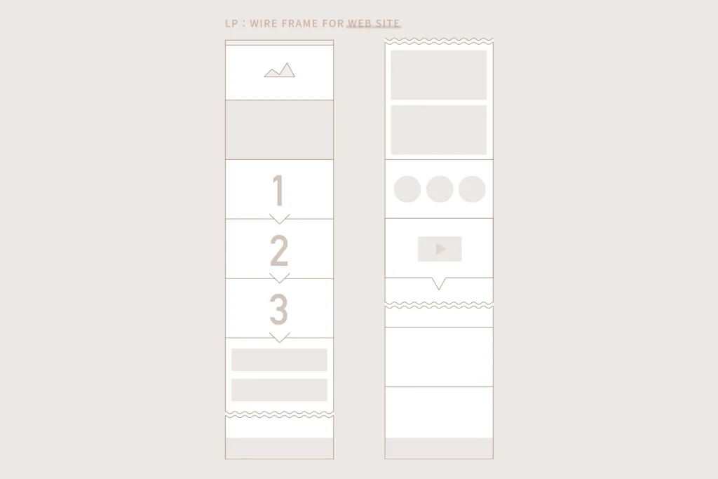 ワイヤーフレームは、どこに何を配置するのかを示す、いわばLPの設計図です。