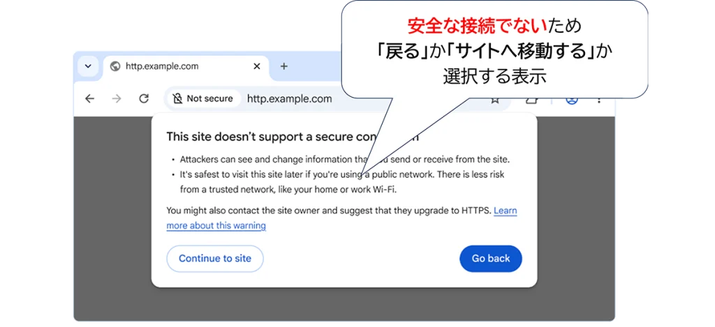 3.「HTTP」サイトはChromeブラウザで表示前に警告される